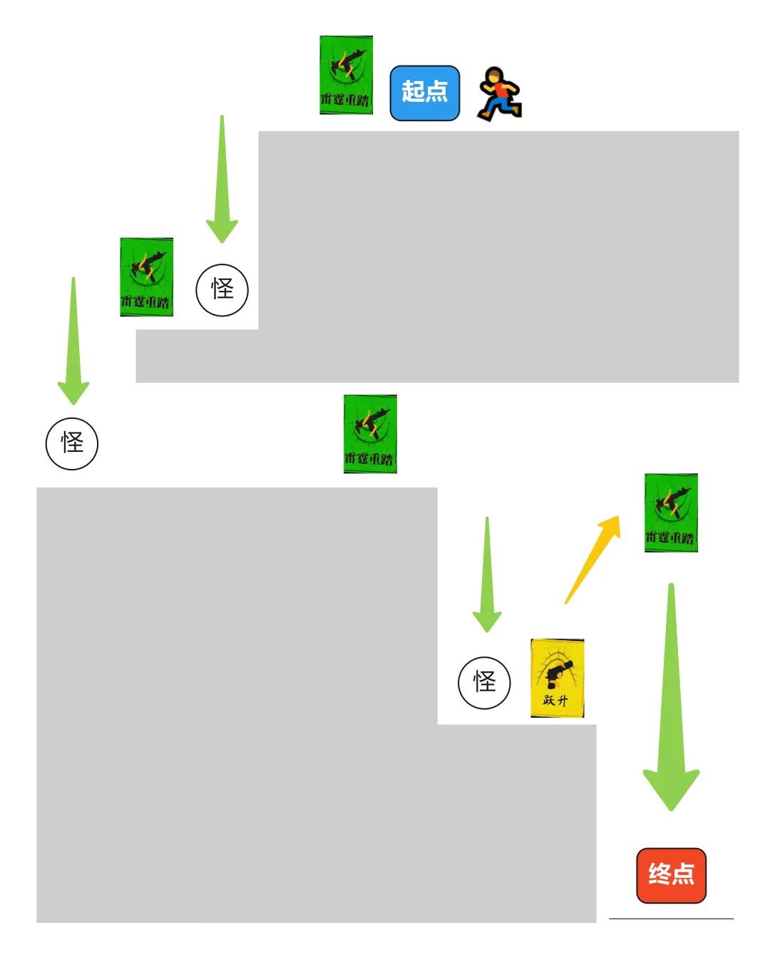 (绿色卡牌代表高速下坠并造成AOE伤害)