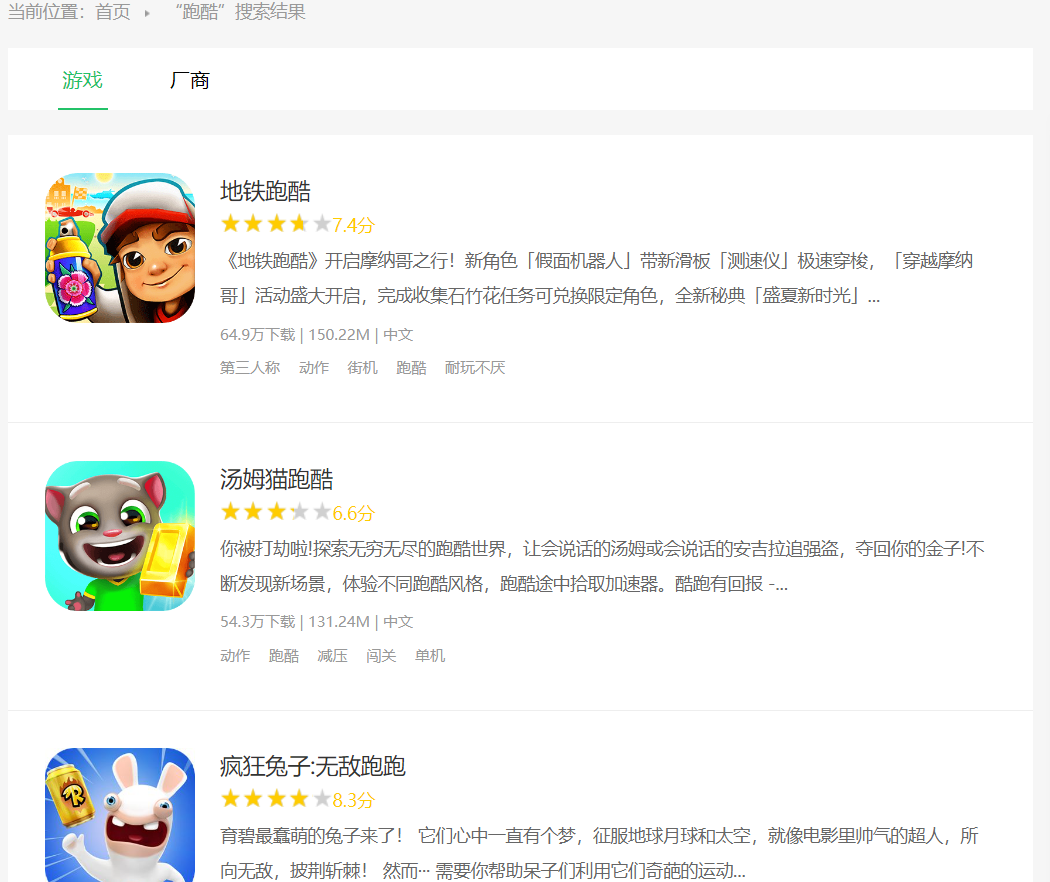 在TapTap、好游快爆上搜索跑酷