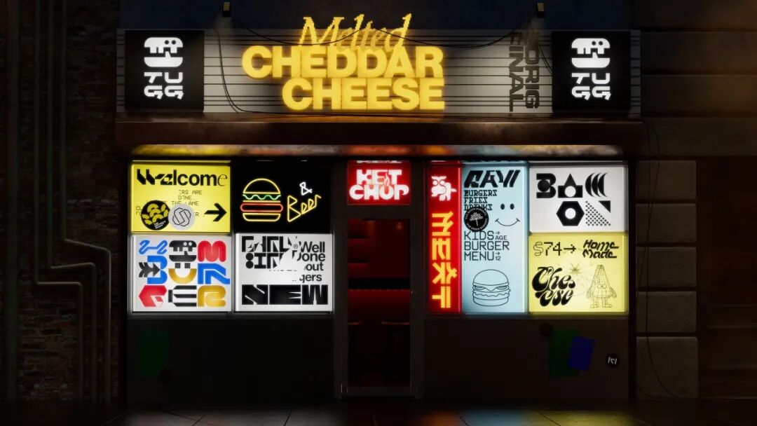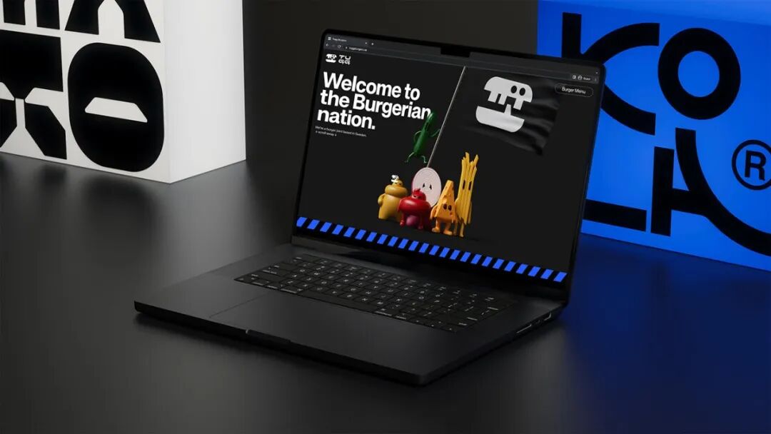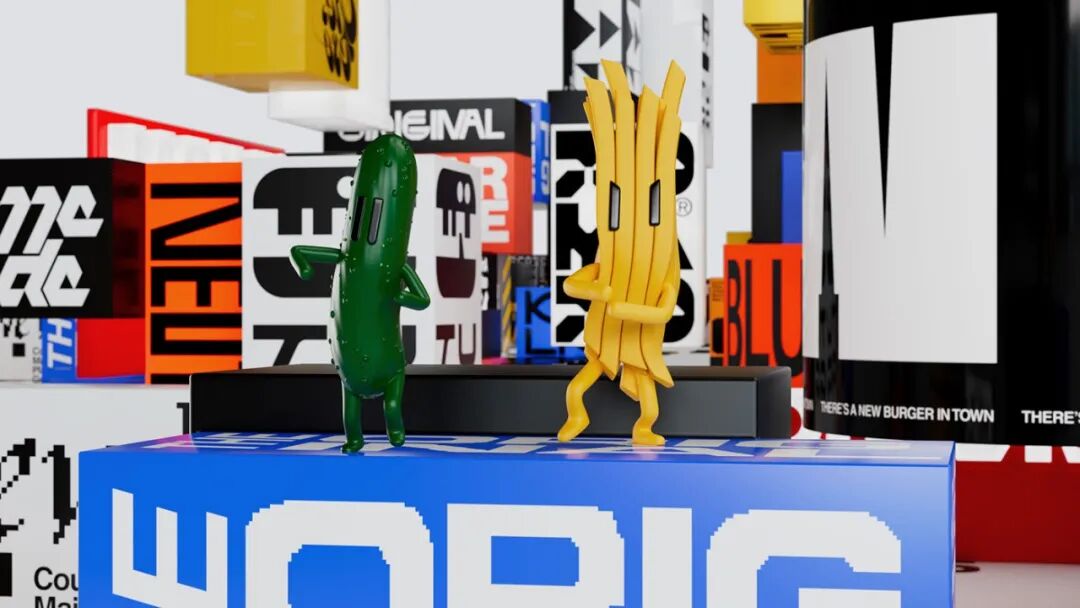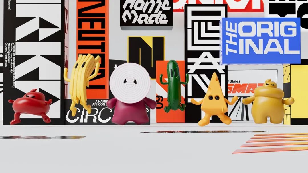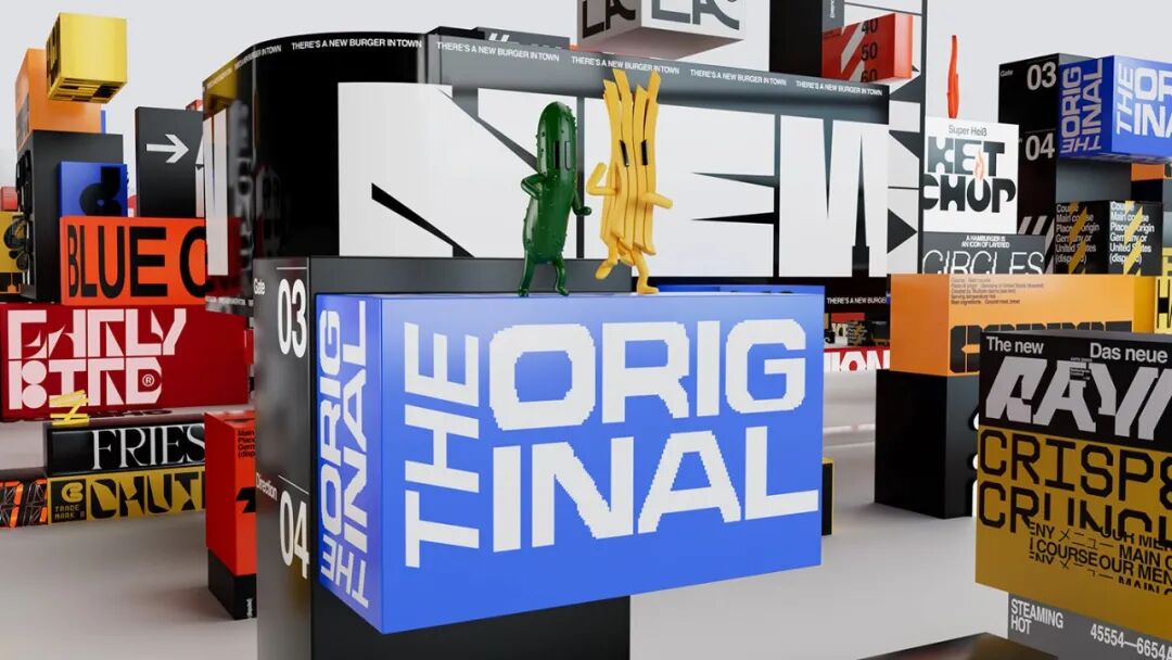 logo是既像汉堡又有点像骷髅的图形,配色也是十分夸张大胆,丝毫没有传统餐饮行业舒缓温和的感觉,同时创造性的设计了几个跟汉堡和快餐有关的人物形象。采用大量的3D效果设计,连门店外表也设计成了这个样子,看上去十分狂野!