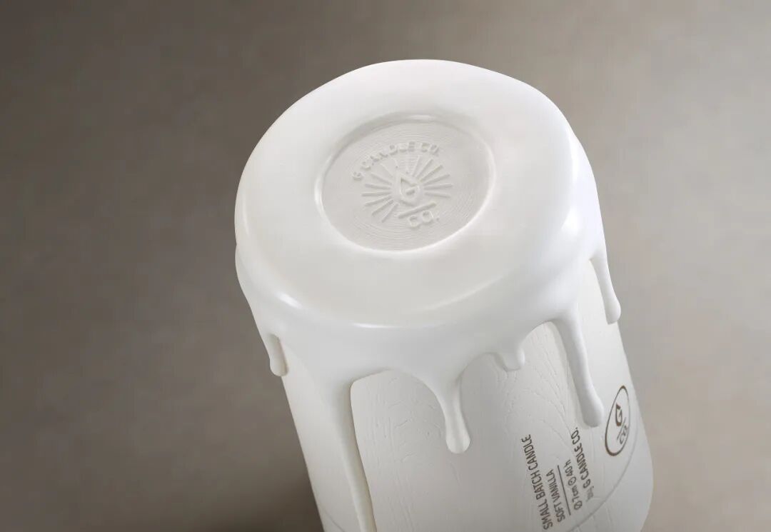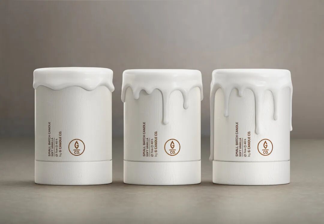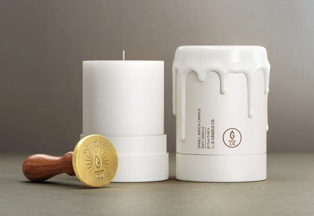 在目前竞争非常激烈的蜡烛市场上,很难在包装上做出产品的差异化。这款包装寻求一个个性鲜明的方法来设计这款包装。选择木质圆柱形包装来传递其产品的天然型,并通过蜡烛的工艺制作,使蜡烛滴在顶部形成独特的蜡流外观,最终这款设计在外观上赢得了市场的竞争。