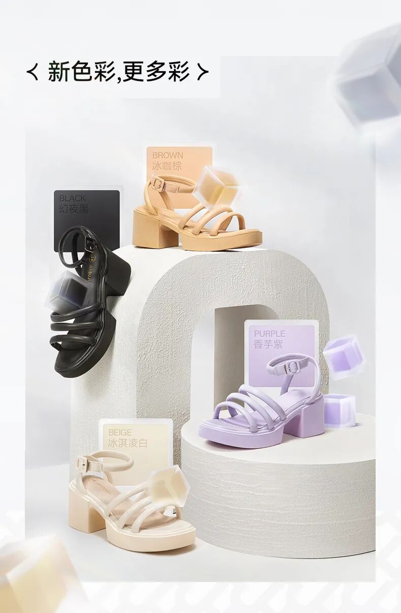 一款小方糖凉鞋产品,设计的整体感觉非常时尚,拍摄的也很不错,特别是模特一前一后的站位对比,很值得学习借鉴。另外产品拍摄的角度,很多都是轻仰角。