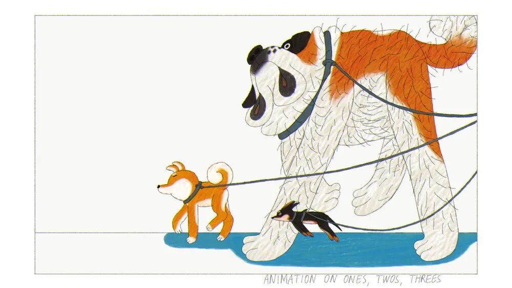 8、三只大小不同的狗,用同样的速度前行,腿长的和腿短的最难受,光是看到都会替它们感觉尴尬。
