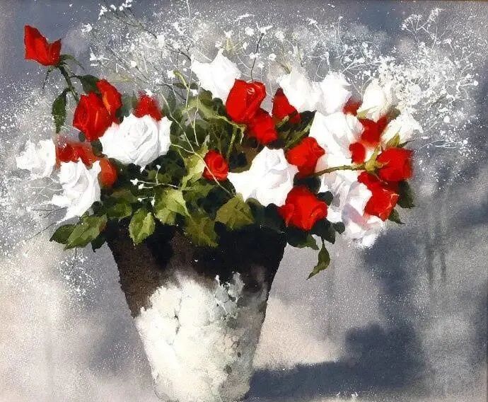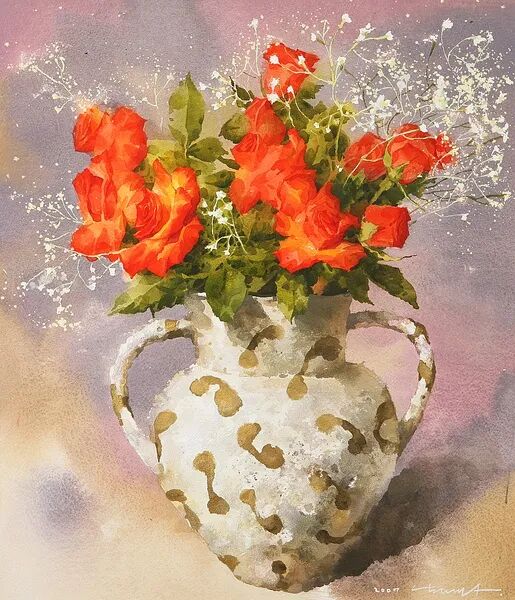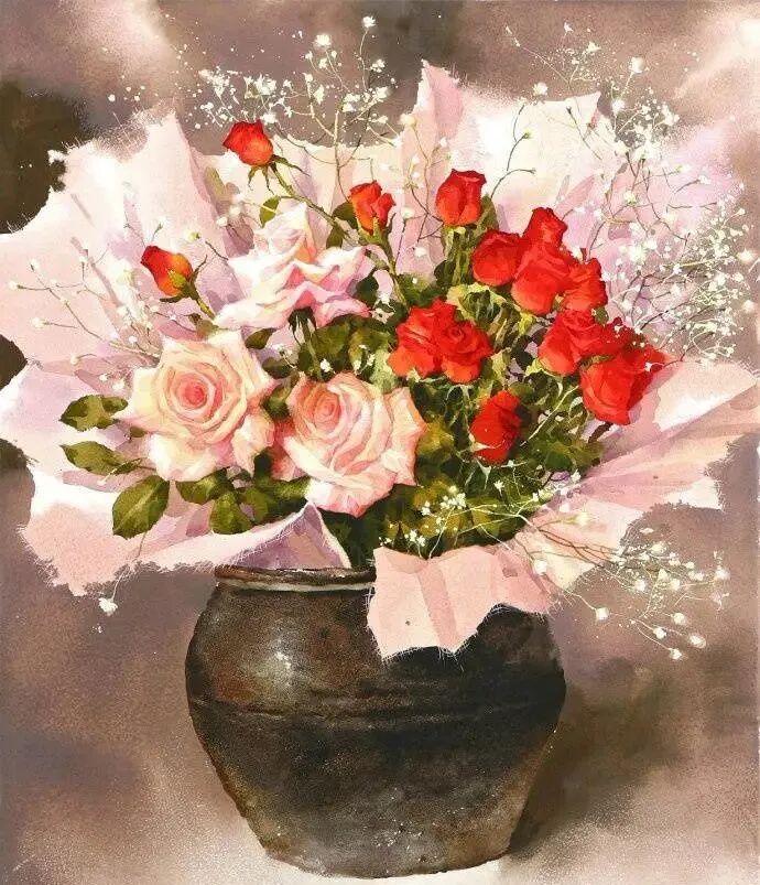韩国水彩画家Namtaeksu 的水彩花卉,