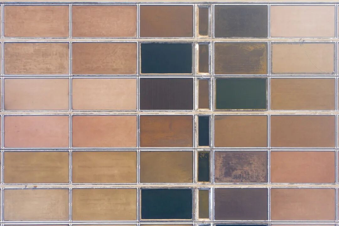 整齐排列的盐池色彩斑斓,犹如天然调色板。