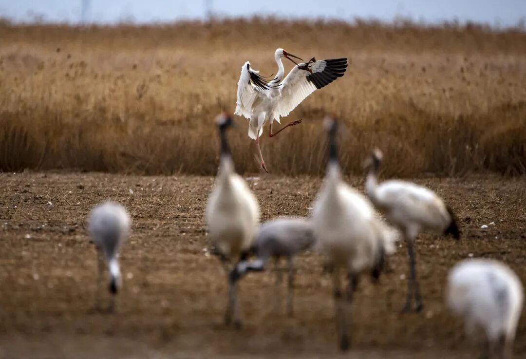 丹顶鹤、白头鹤、白鹤、东方白鹳、黑鹳、中华秋沙鸭、遗鸥、大鸨、白肩雕、金雕、白尾海雕、麋鹿、中华鲟、白鲟,共十四种国家重点保护的一级野生动物生活在这里。