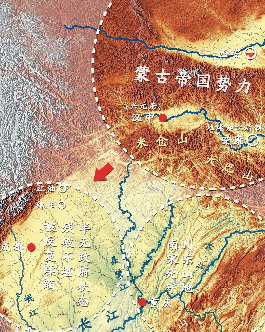 元朝时,在川渝人民与横扫亚非欧的蒙古铁骑数十年的英勇战争中,最高统帅蒙哥大汗被川渝人们在固若金汤的钓鱼城炮击身亡,然而川渝百姓死难无数,青壮年男子几乎全部战死。