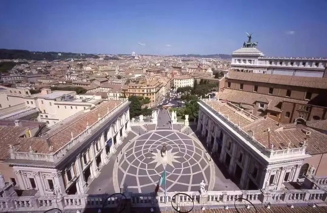 具体来说,中心大广场借用了米开朗基罗16世纪修建的卡比托里欧广场,形状和大小都一致,而山丘上的广场倒转成了下沉式庭院,中央的骑马像变成了一座喷泉。