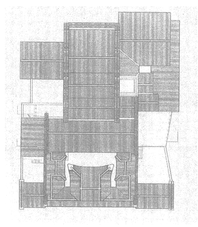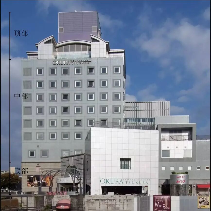 我们可以进一步分析,以矶崎新的筑波中心举例分析相同点: