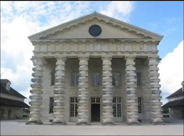 主体建筑借用了欧洲古典建筑的三段式构图,外墙上随处可见的圆柱与棱柱交错堆砌的柱式引用了勒杜在阿尔克塞南皇家盐场的锯齿形立柱。