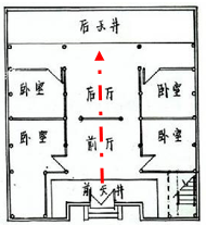 这一点与徽派建筑十分相似,其都讲究规格礼数,我们可以将其与徽派建筑的典型平面图进行比较,很明显发现都以带有礼数、公共属性的空间为核心。并且在纵深方向形成了公共属性的空间序列。