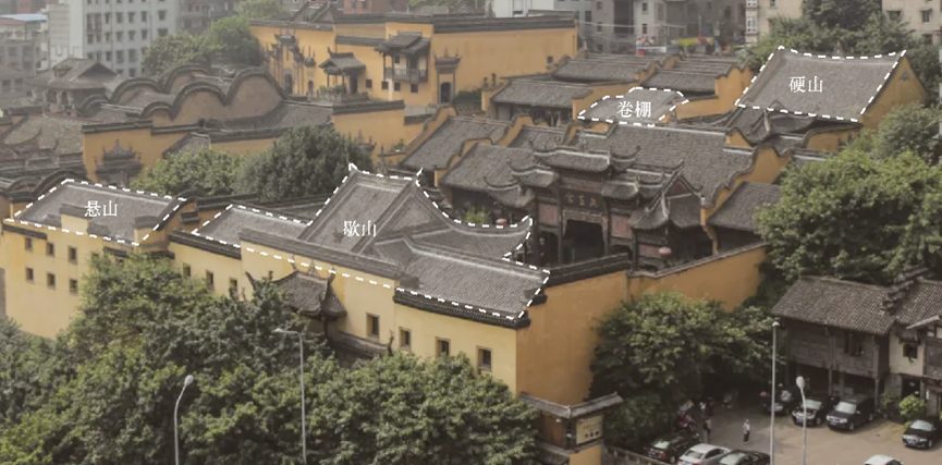 其次,便是屋顶。而屋顶更像是早已融合了各个地区建筑精髓的产物。其使用不同的屋顶结构——悬山、卷棚、歇山……