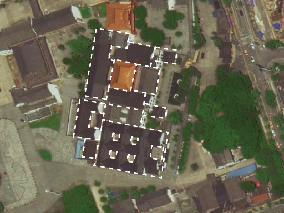 至于广东会所,又称南华宫,其空间形式便为一进四合院的格局(右侧为现加建建筑,故暂时不讨论),看厅与戏楼相对,左右附有厢房,四周高墙耸立。