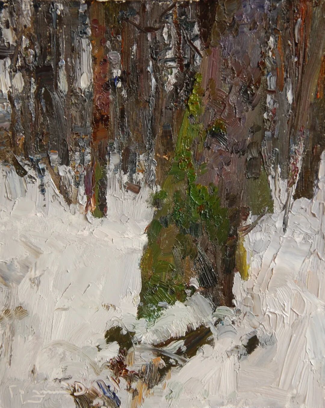《在冬天的森林里》In the winter forest. oil on board,27x32cm. 2022