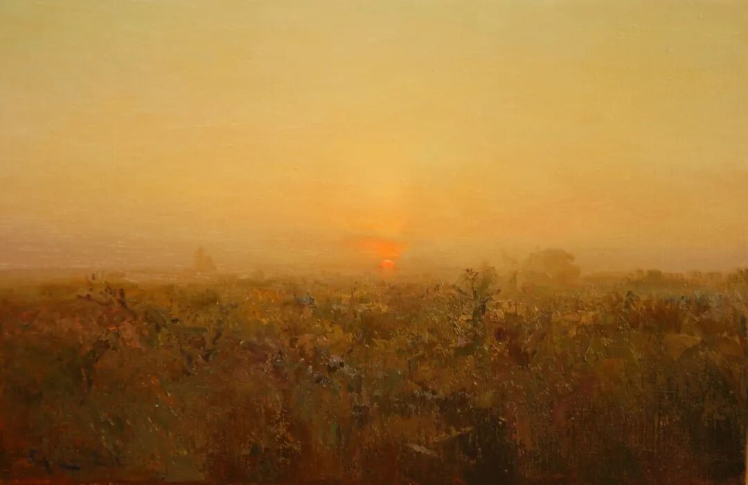 《晨雾》Morning fog. oil on canvas, 22x37cm. 2020.