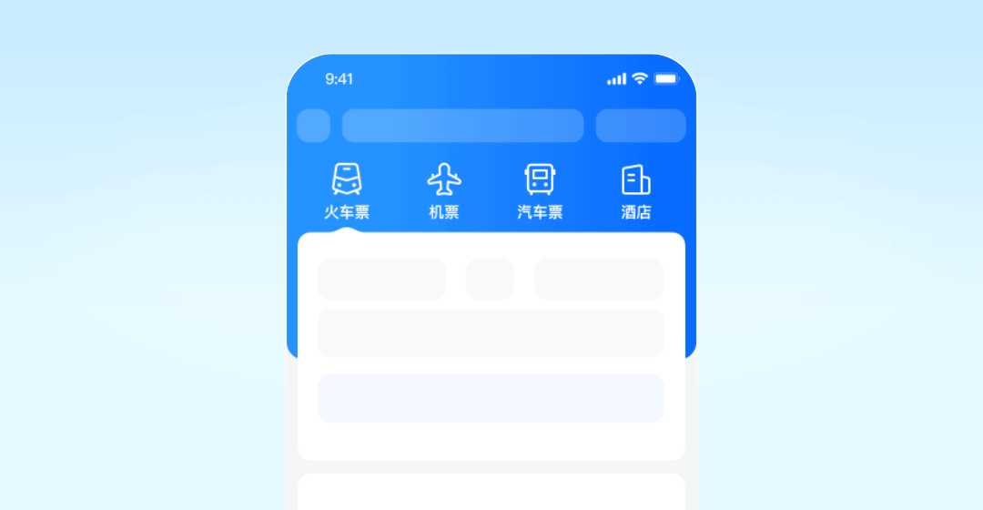 天空是纯澈与美好的汇集,正如旅行中探索快乐的本心。我们从中寻找灵感,从智行品牌蓝延伸出“纯净蓝”,并将其作为背景色融入核心流程页面中,营造蓝天白云阳光暖煦的视觉氛围。同时,我们提高了辅助色的明度和饱和度,让页面配色更活泼。