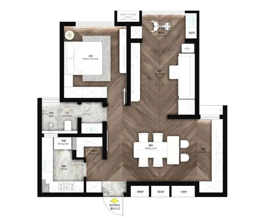 2.通风采光与户外景观,本户型因为不是南北通,餐厅处的采光和通风都略差,需要重塑餐厅空间。