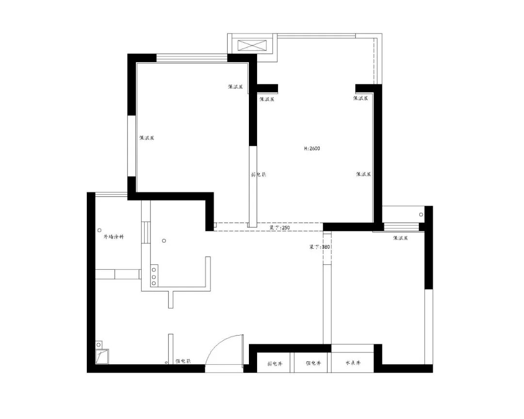 1.建筑结构,我们根据原始结构图,判断建筑属于混凝土板墙框架架构,所有非黑色实心内墙均可拆除。但上下水与风道位置不适合改动,会引起上下邻里间不必要的隐患。