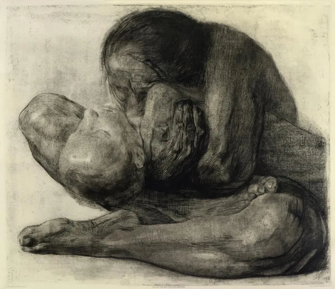 怀抱着死去孩子的女人 42x47cm 铜板蚀刻版画 1903年