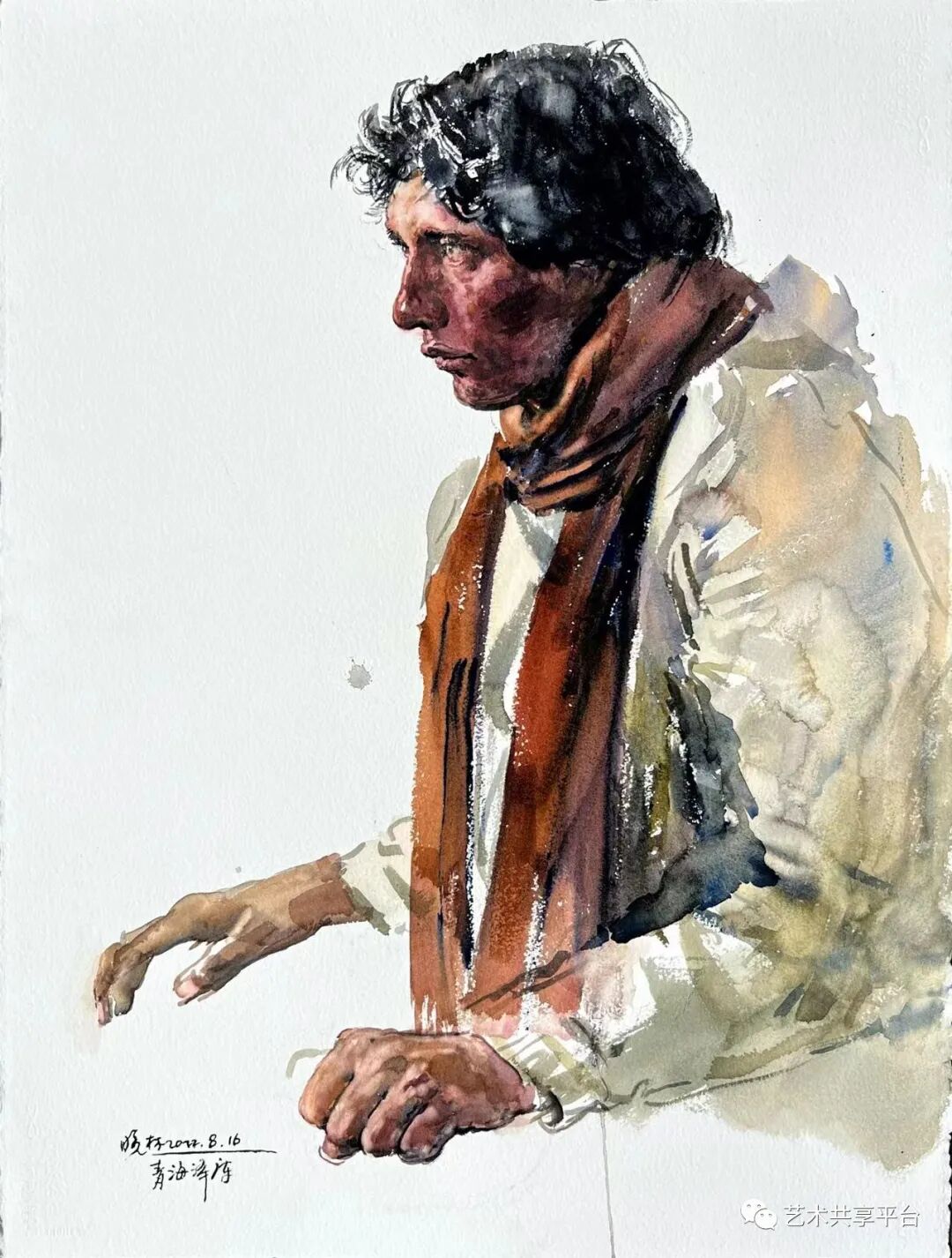 《陌生人》水彩 76×57cm 李晓林 2022年