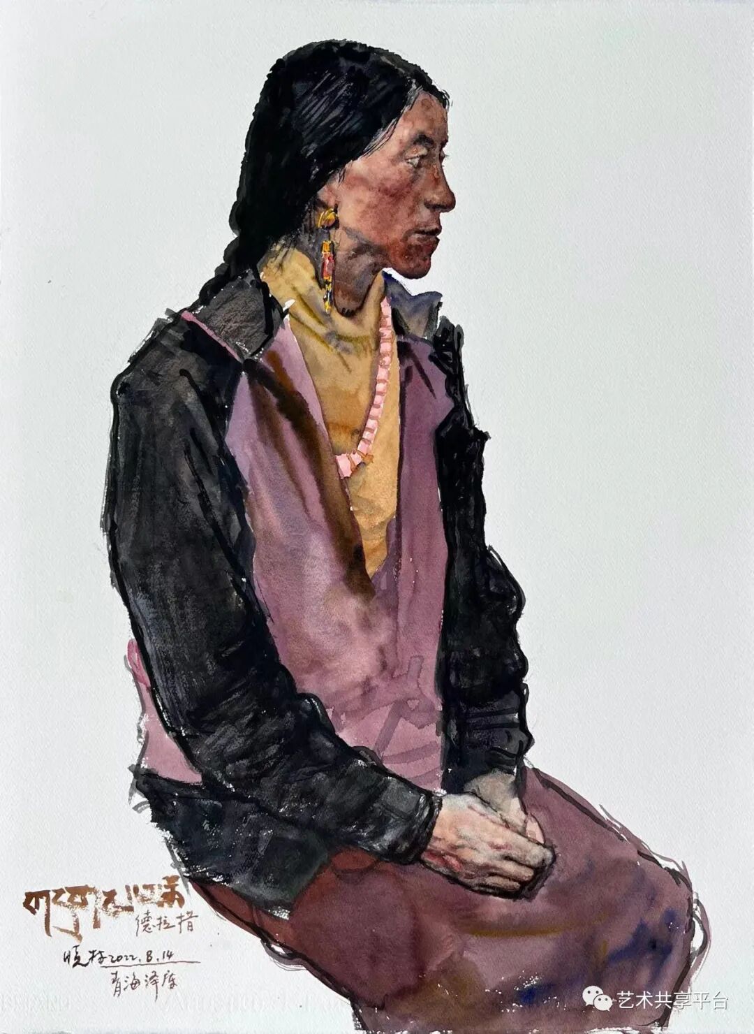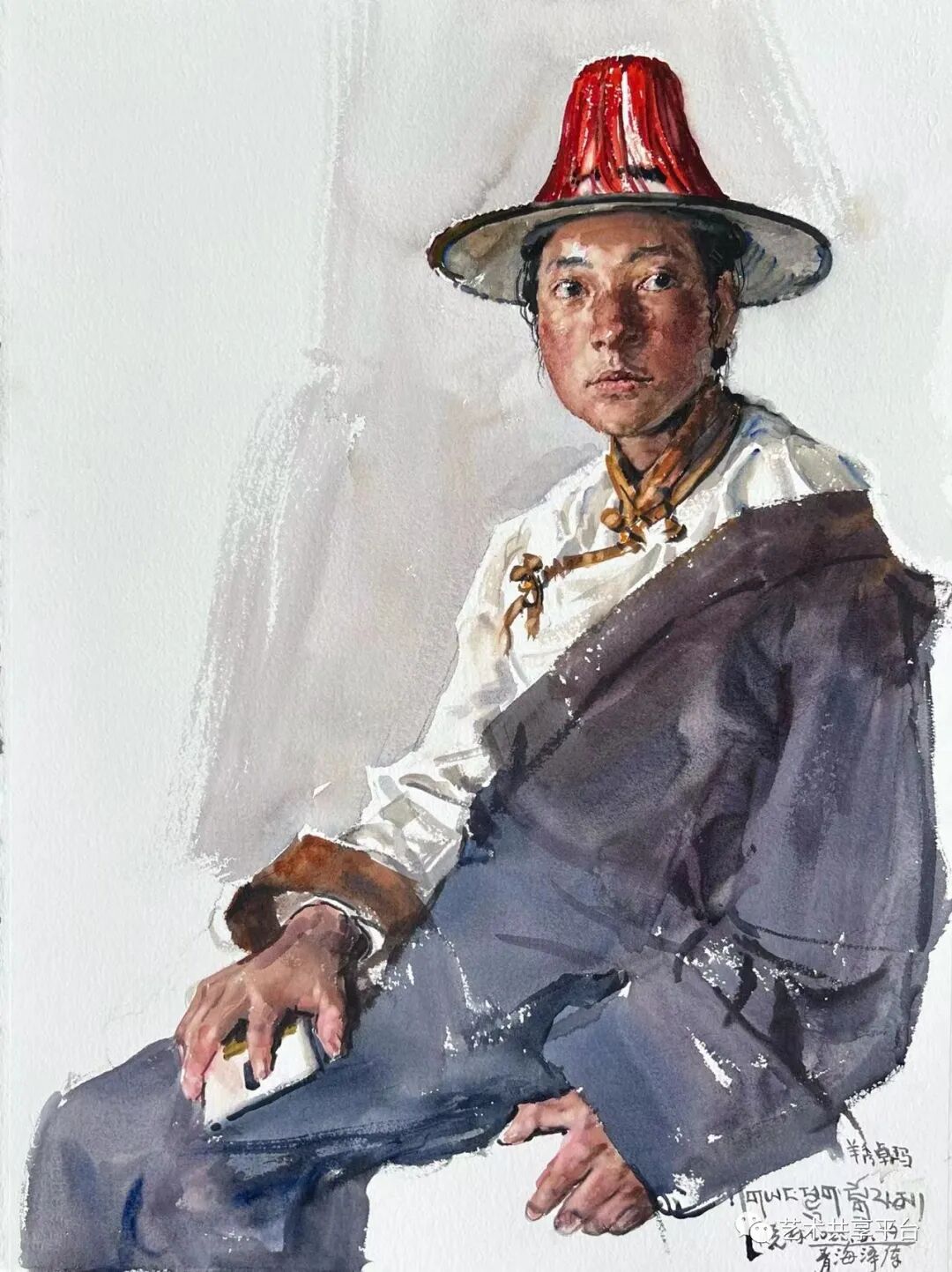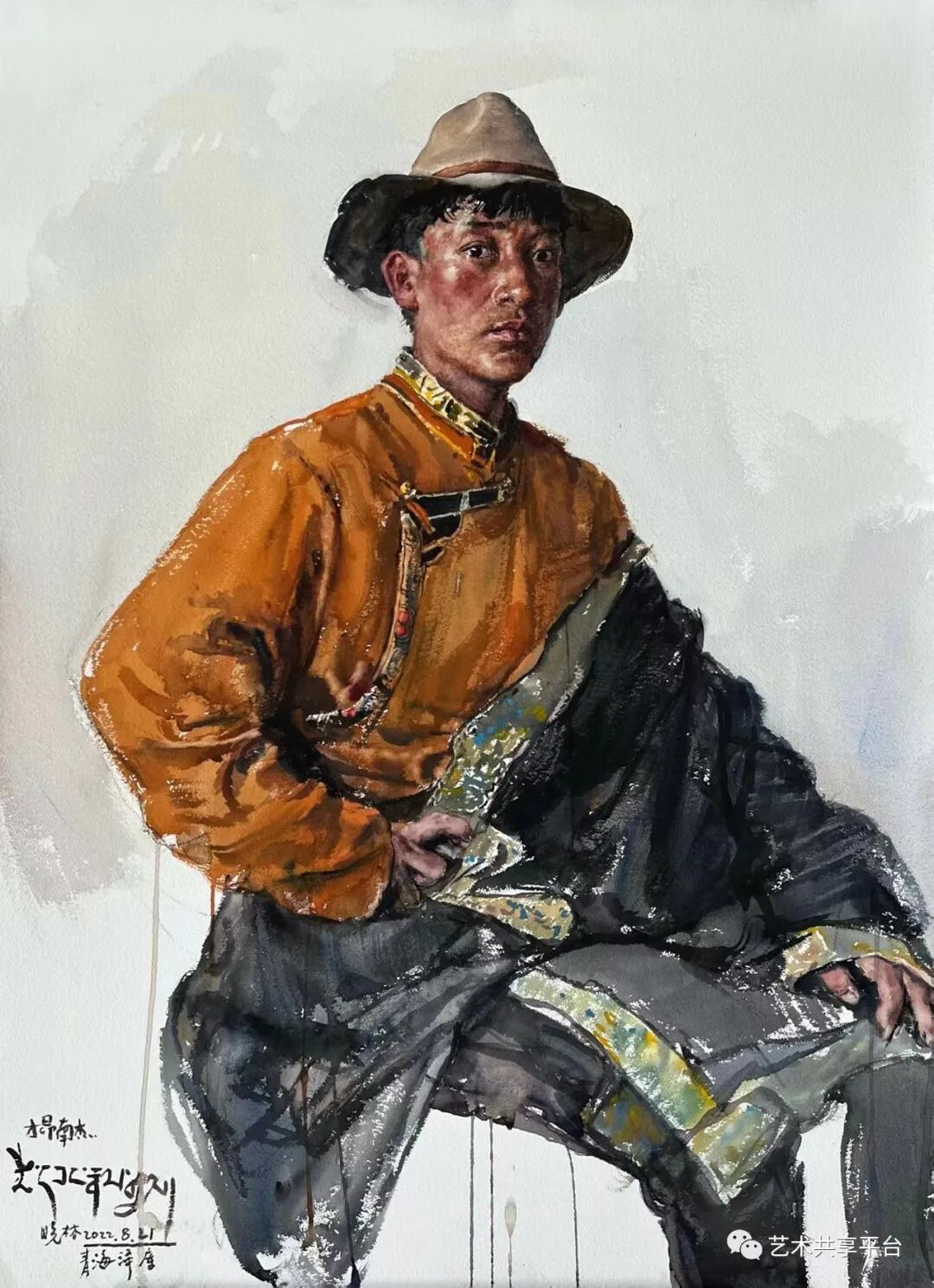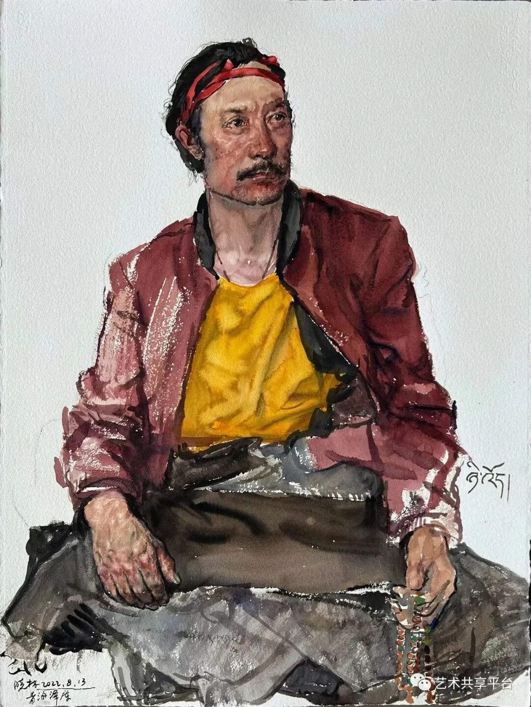 《泽库藏民》水彩 76×57cm 李晓林 2022年