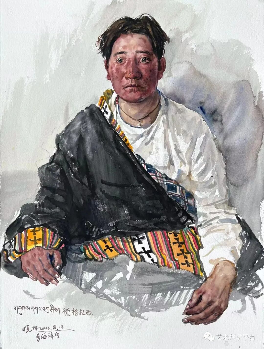 《德格扎西》水彩 76×57cm 李晓林 2022年