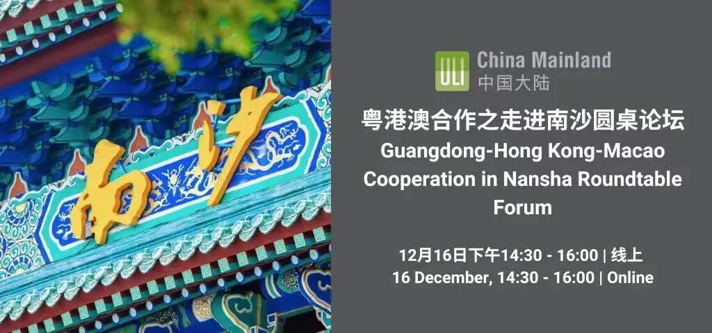 12月16日,由ULI大湾区组委会主办的粤港澳合作之走进南沙圆桌论坛将于线上举行。会议将联同广州南沙粤港合作咨询委员会,邀请政府部门、房地产企业、专业人士和高校代表共同参与讨论,分享对南沙规划以及未来发展机遇的真知灼见。