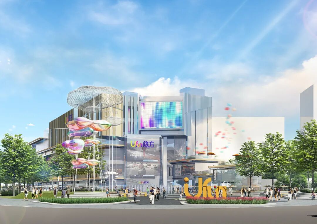 设计师通过研究和挖掘森林的特点,结合梦蝶精灵的IP形象,将森林的自然力量引入这个城市综合体,将U-FUN打造为承载商业活动以及社区交往的森林客厅。屋顶花园的儿童游乐区结合探险故事线,形成具有故事情节的游乐场景。设计以“打造一个IP营造一种氛围,创造一种生活”为核心,从时间和空间等多维度探讨商业运营的可能性,为场地赋予独特的气质及核心吸引力;用镜面、灯牌、IP塑造等锁种手段激活商业空间,打造体验性社区商业。