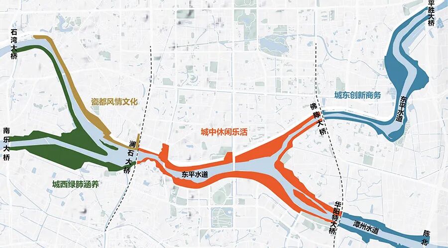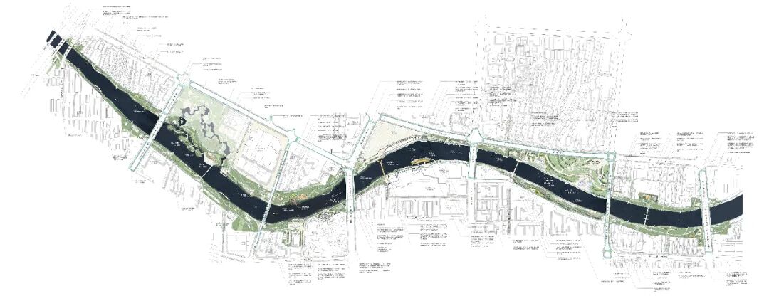 项目位于山东省潍坊市,为中心核心区段河道及周边公共空间整体打造。在该项目中,设计团队针对多样的城市功能需求,提出“链接、激活、适应、再现、重构”五大设计策略,以整合两岸经济资源、传承场地文化、重塑街景活力。通过景观规划手法,致力于引爆潍坊城市文旅商核心点,打造白浪河中心区段为城市滨水活力前沿。