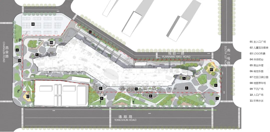 项目位于湖南省华容市河西老城区中心地带,是改造河西老城区,打造城市新地标的黄金节点。现状周边以传统单一的"一街两铺"的布局形式为主,区域业态同质化严重,多为生活服务、低端休闲娱乐业态。设计旨在打造一个活力、特色、多元的年轻化商业街区,以亲子类消费业态为主,激发城市潜在活力。