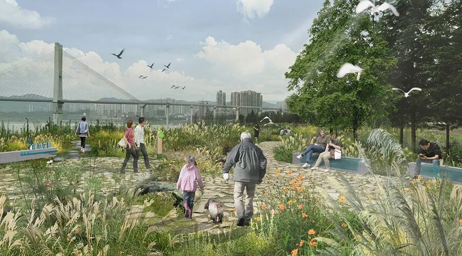 项目位于重庆市,起点始于锦绣江南小区西部,终点至茶花广场东,沿滨江路长度2.5公里,面积约73.4公顷。主要设计内容包括:回归自然,保育鱼鸟栖息的江滩生境;回归人民,复兴多维活力的魅力场所;回归城市,勾勒有机生长的互动江城。总体定位为山水一脉、与城共兴,打造以生态保护、科普宣教、休闲游憩为主的城市生态湿地公园,保护和修复生物栖息的环境——恢复石肌、石滩、石潭、湿地、植被等自然生态基底,构建生物多样的生境,培育与自然为友的活力空间——以展现自然肌理的类自然设计手法为市民提供安全且有趣的活动空间。