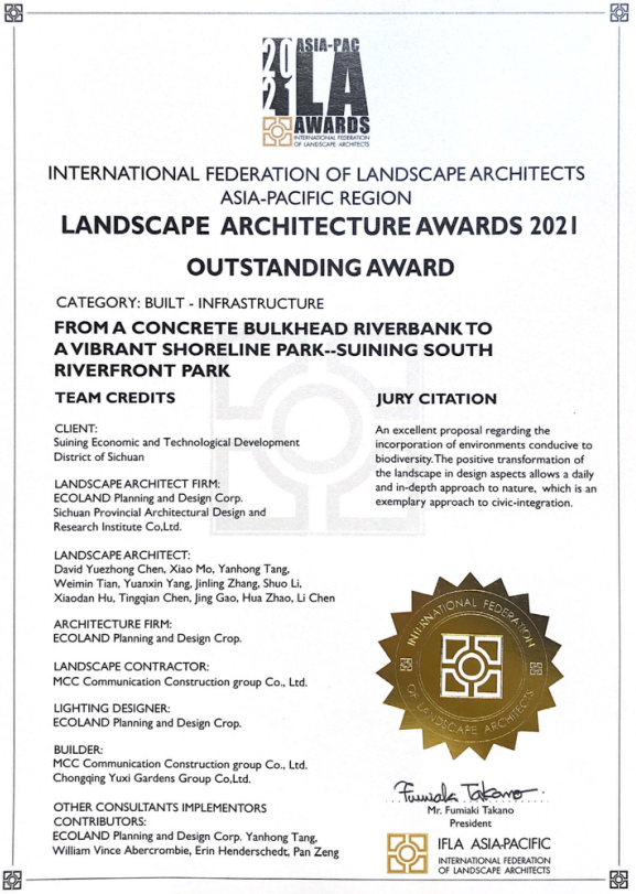 在“钓鱼嘴音乐半岛环境提升概念方案征集”中,“重庆大学建筑规划设计研究总院有限公司+易兰(北京)规划设计股份有限公司”联合体的设计方案——“山水有音,唱响重庆”获得评审专家的好评与认可,最终以优胜推荐方案第一名的成绩脱颖而出。