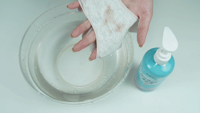 污渍较浅的话,只需挤两滴在污渍处,随便搓一搓就干净了。