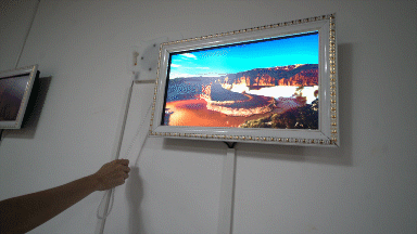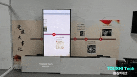 党建发展史滑轨屏:通过机械滑轨控制装置,结合背景墙实现对屏幕内容的互动控制,滑动到不同位置时屏幕展示相关信息,可以是图片、文字、视频等。