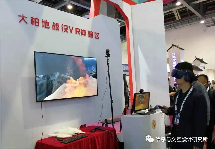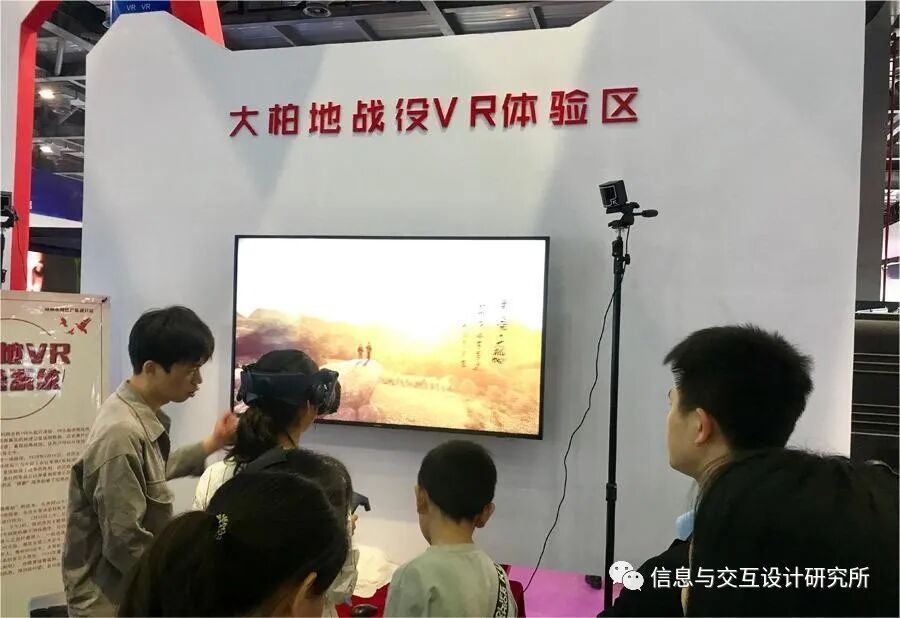 在展会“大柏地战役VR体验系统”现场体验中,学生穿戴好VR设备,屏幕上立即出现了大柏地战役的背景介绍,接着进入了战争场景。学生手持VR手柄,小心翼翼地与红军战友并肩作战,最后取得了胜利。