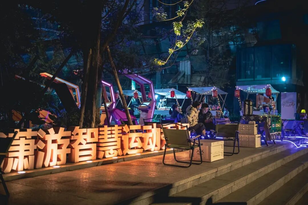 扫码付费即可游玩,进一步激活了场地的夜间经济,实现了潇游智趣商业运动广场的全时运营。从商业运营的逻辑来考虑动线、功能分区、业态组合等,实现了周边业态与设备的有效联动,提升游客的停驻时长和多元需求。
