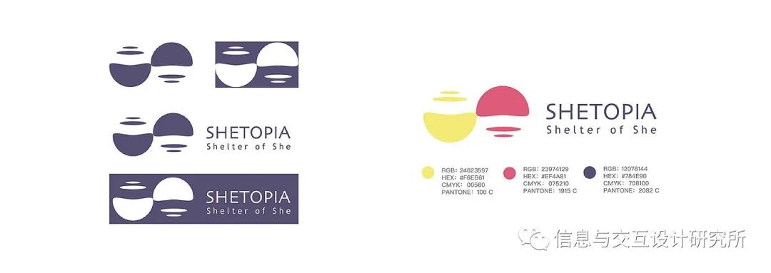 标志设计:两个半圆形拱门落在一起,结合颜色,代表了一个安全舒适的全方位房子,适合从月亮升起到太阳落山的女性。同时,它们巧妙地构成了Shetopian的"S"。和谐的造型更具包容性,再次强化了客户心目中创新、安全、舒适、友情的形象。
