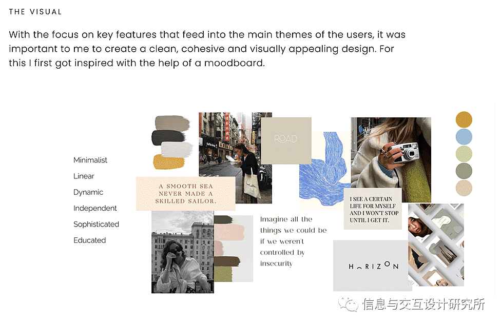 视觉的设计作者通过极简等概念的情绪版作为引导,希望创造一个干净有凝聚力和视觉吸引的效果。