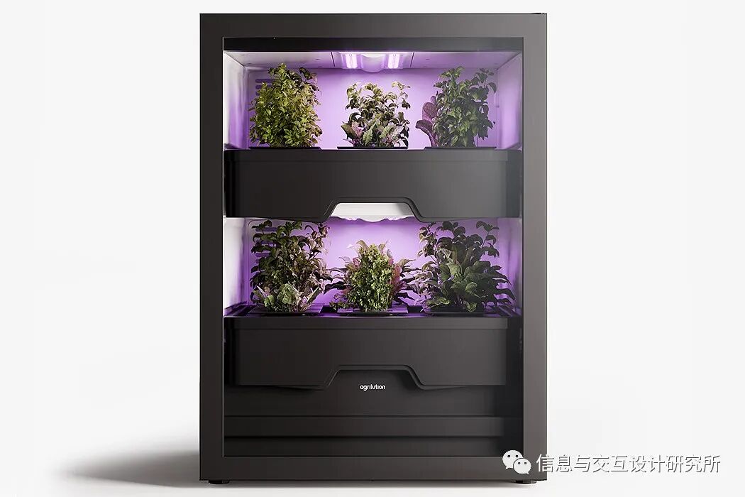 基于 The Subdivision 团队开发的 3D 可视化,Agrilution 像大多数室内垂直农业产品一样运作。绰号 Plantcube,Agrilution 形成了一个小冰箱的形状,包含两个滑动架子,用于放置农作物和土壤播种机。