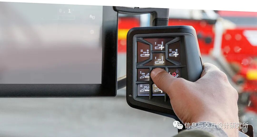 图形显示器借助机器通过ISOBUS提供的符号,将不同的功能可视化。对于重要的主要功能,较大的按钮尤其有用。
