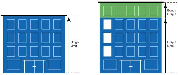 同时,允许通过密度奖金(Density Bonuses)来进行高密度的开发。
