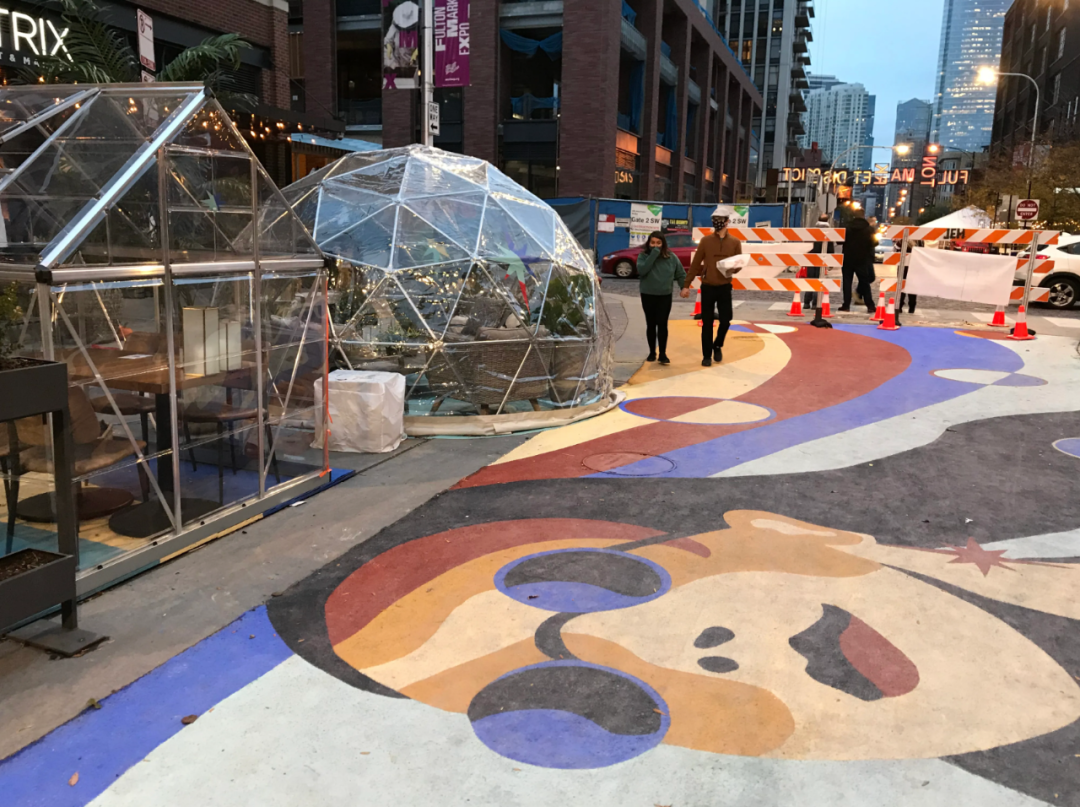 疫情期间,富尔顿市场创新区允许在 Randolph 和 Fulton Market 沿线进行户外用餐,芝加哥文化事务和特别活动部 (DCASE) 和城市艺术计划在疫情期间继续为艺术家和非营利组织提供年度赠款和倡议,解封后,美食和艺术可以帮助该地区增强其混合用途的活力。