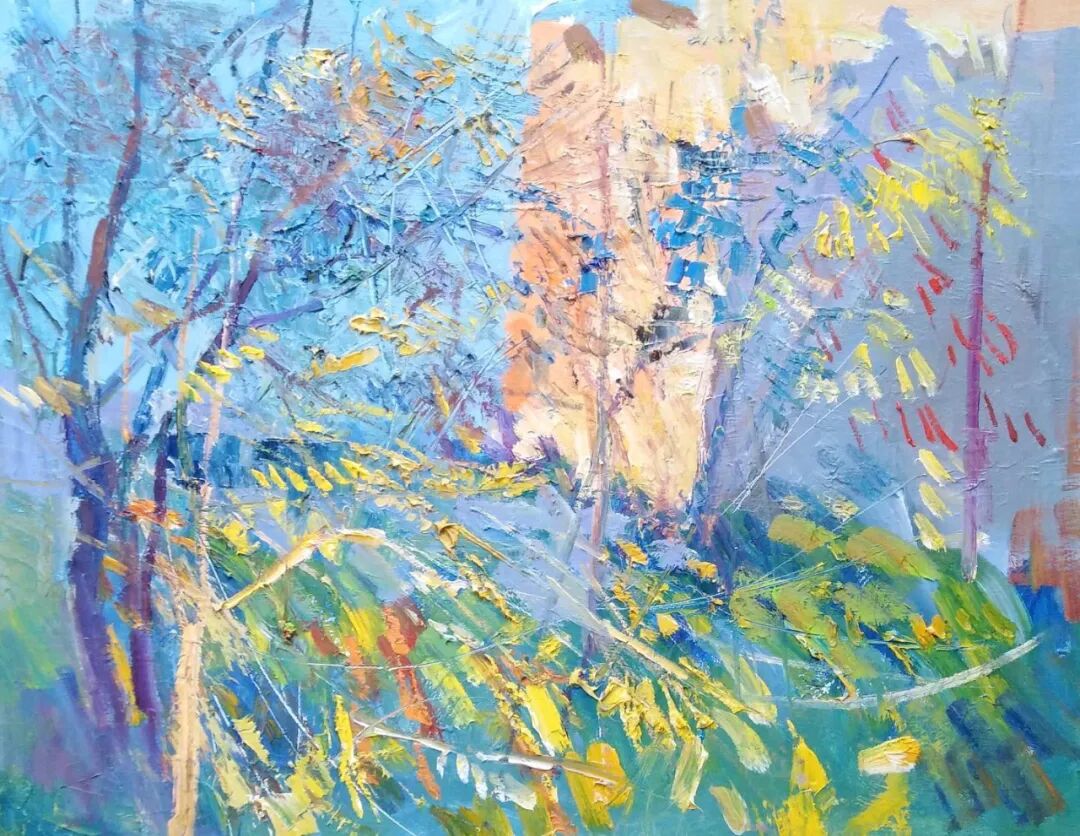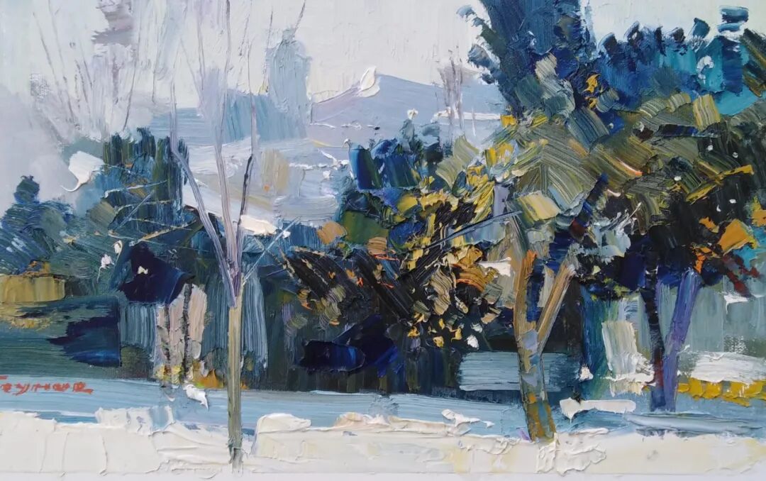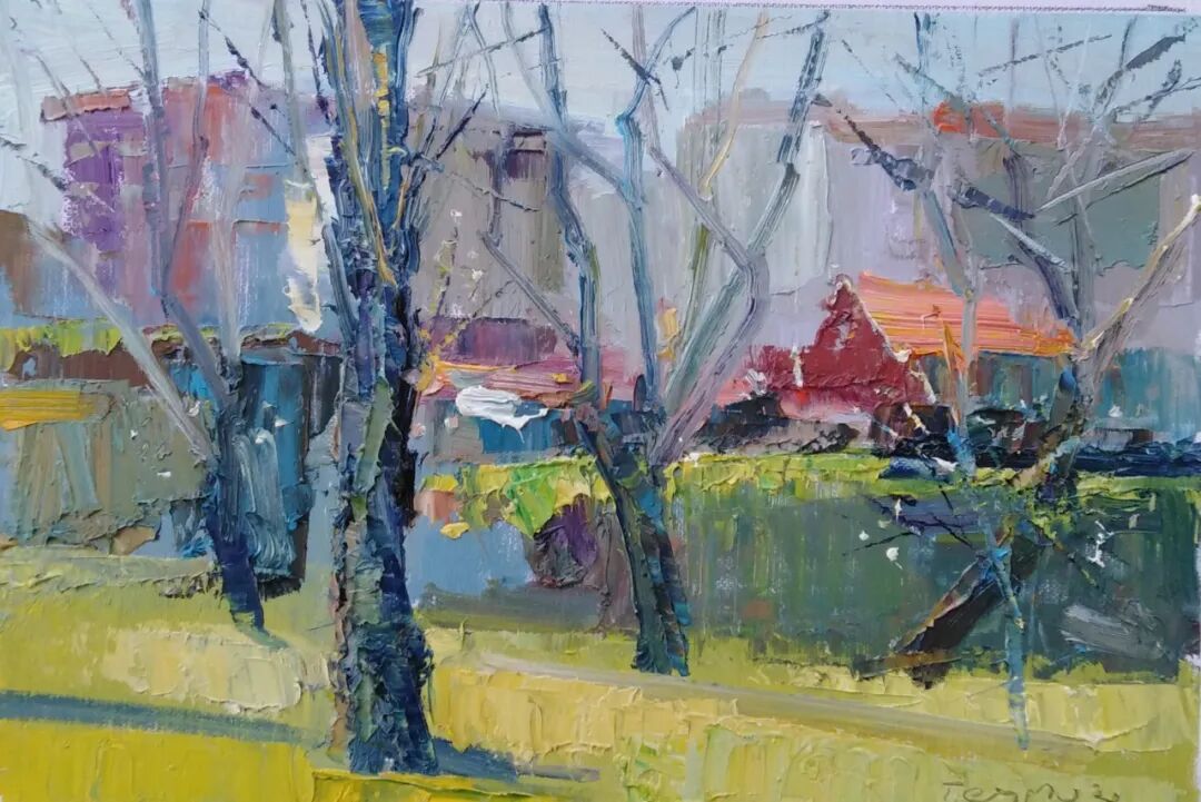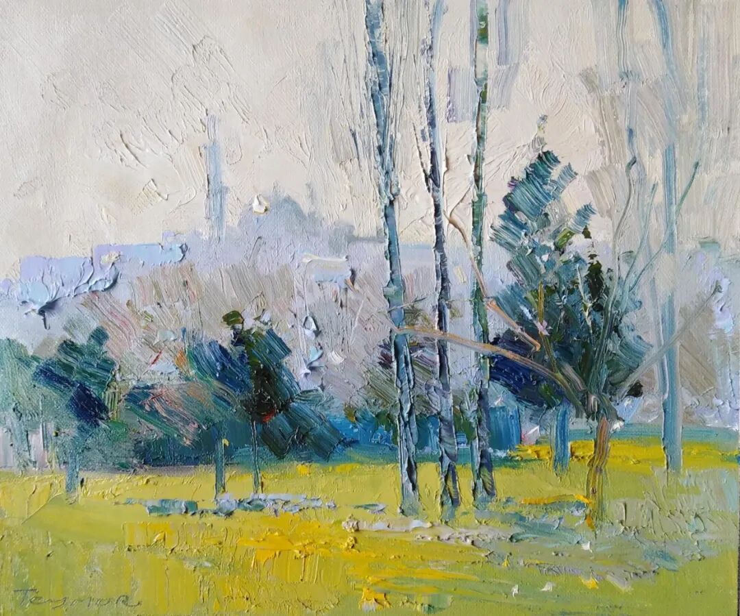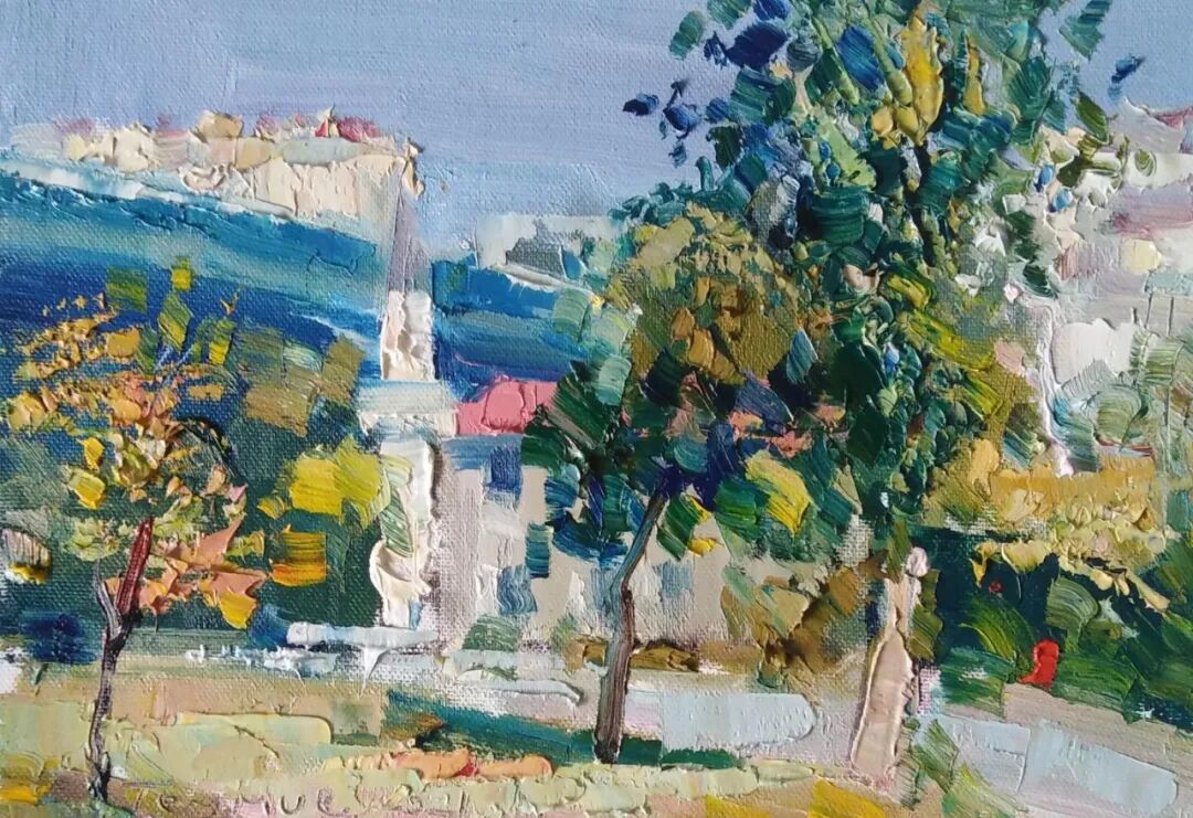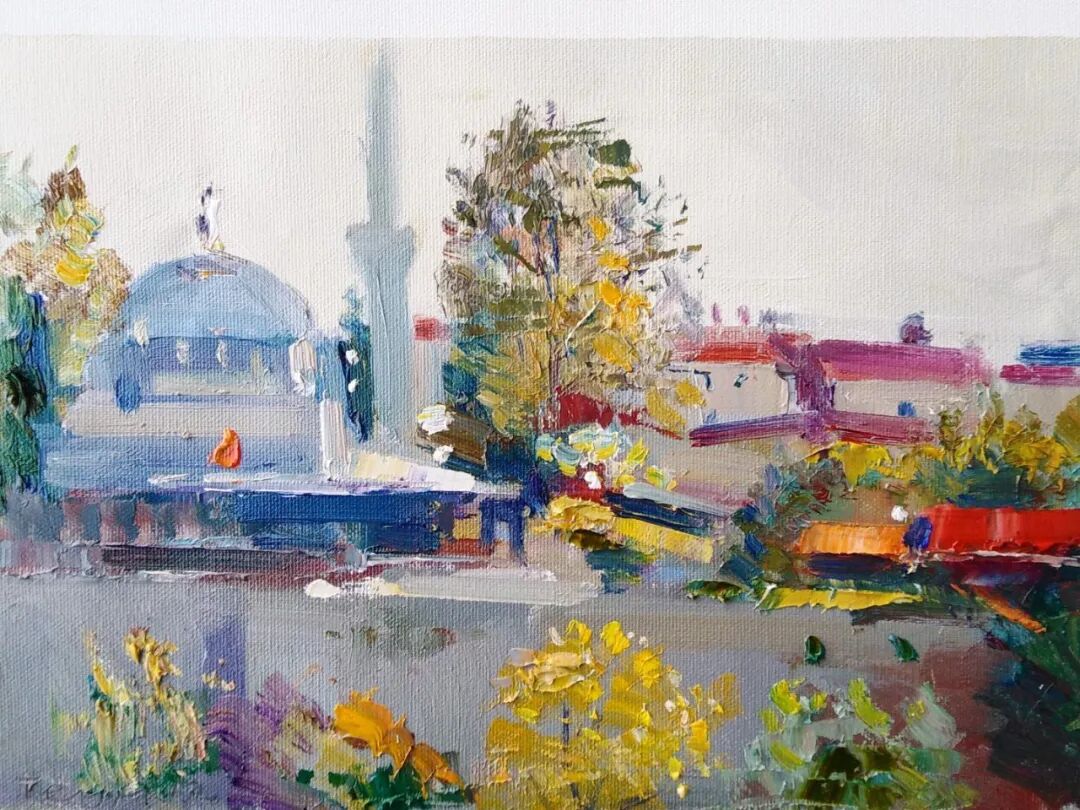 从大致的眼光看,他还是沿着前苏联主流风景画的路在走,放弃了一部分灰色调的弥漫,原色在最夺目的地方使用,这也是一种有益的尝试。格鲁吉亚地处西亚,和欧洲文化接触较多,加上和土耳其艺术的交流,他的作品也是有些多元地方色彩的。