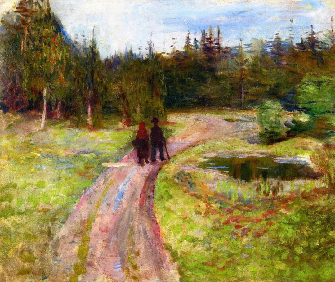 1884, 两个人在去森林的路上,Two People on the Way to the Forest, oil on canvas, 34 x 55.5 cm, Private Collection