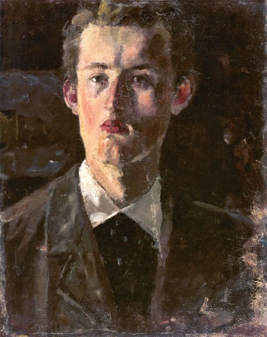 1882-83, 自画像, Self-Portrait, oil on cardboard 43.5 x 35.5 cm , Bymuseet, Oslo