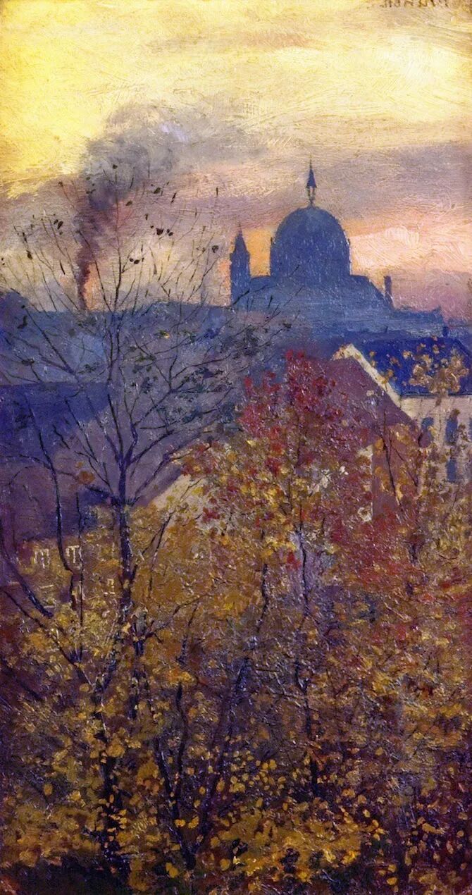 1883-84, 阿斯克的秋天,Autumn in Asker , oil on cardboard 37 x 62 cm , Private Collection