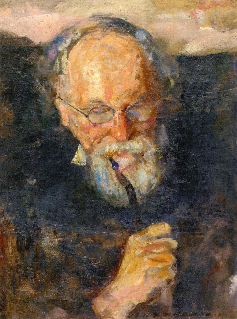 1885 , 克里斯蒂安·蒙克与烟斗,Christian Munch with Pipe , oil on canvas, 37.5 x 28 cm , Munch Museum, Oslo