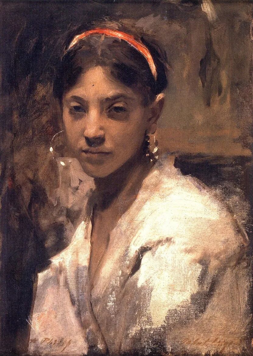 Head of an Italian Girl oil on canvas 45.7 x 31.8 cm Private Collection
