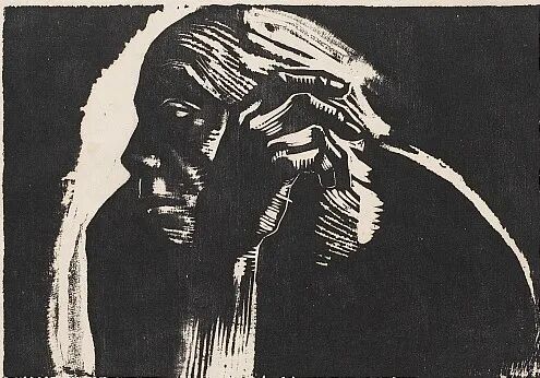 浮想中的女人,Käthe Kollwitz, Woman Thinking, 1920.
