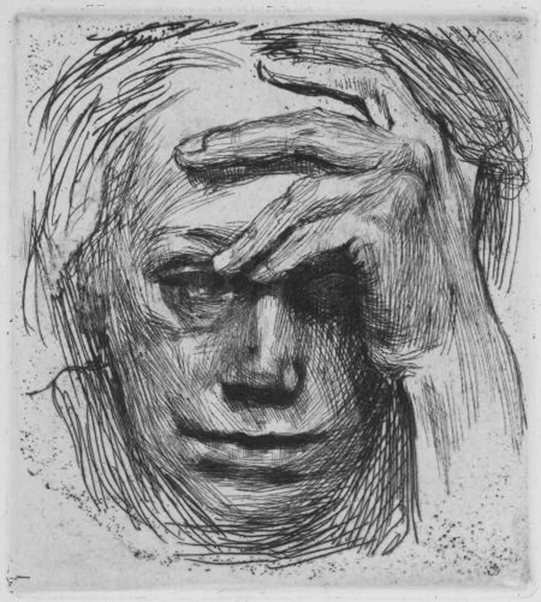 手托着额头的自画像,Käthe Kollwitz, Self-portrait with the hand to forehead, 1910.
