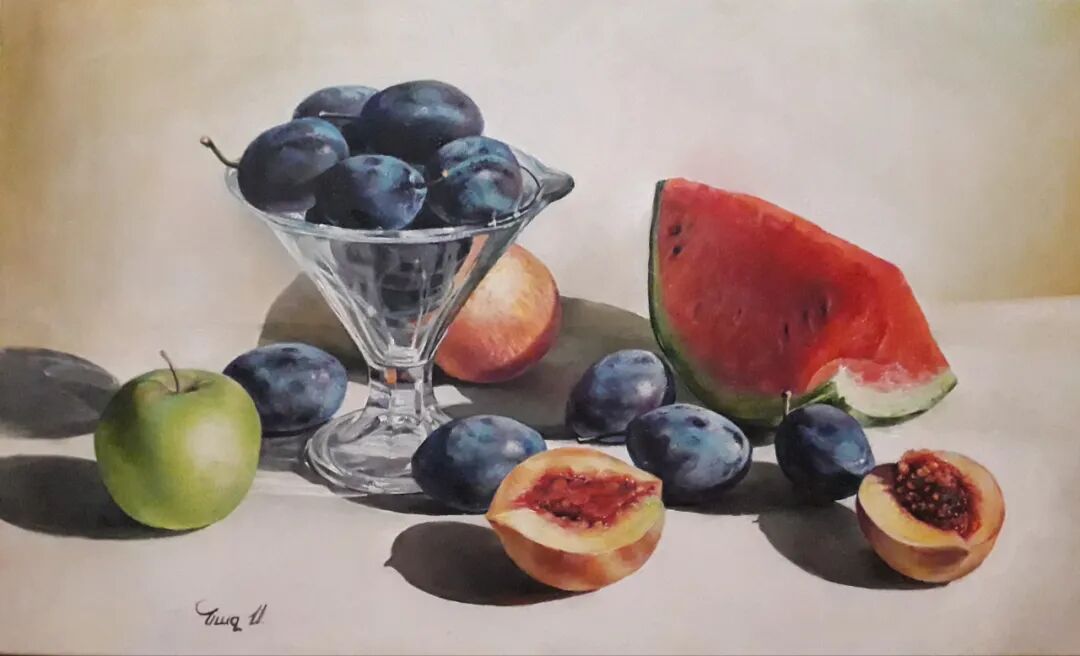 她的作品风格偏于具象写实,但画作带给观众的首先是安静的平和,娴熟的制作非常到位,作品的局部和阴柔的笔触告诉了我们画家内心的状态,这是发自真心的艺术的表达。这样的平静,可以驱赶邪恶,远离战端。我们衷心地祝愿苏珊娜的艺术道路平坦坚实,永具魅力。